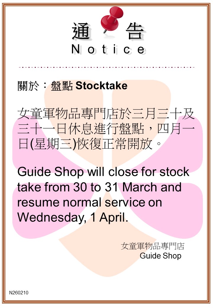 Unit members in group are welcomed to purchase uniform at Guide Shop. Unit guider shall fill in the form at least 7 working days in advance for making appointment for 10 or more members to come to Guide Shop to buy uniforms. We will confirm the time and date by email or telephone. Unit members will be served in priority. If the selected time has been occupied by other unit, Guide Shop will offer other possible time range for choice.